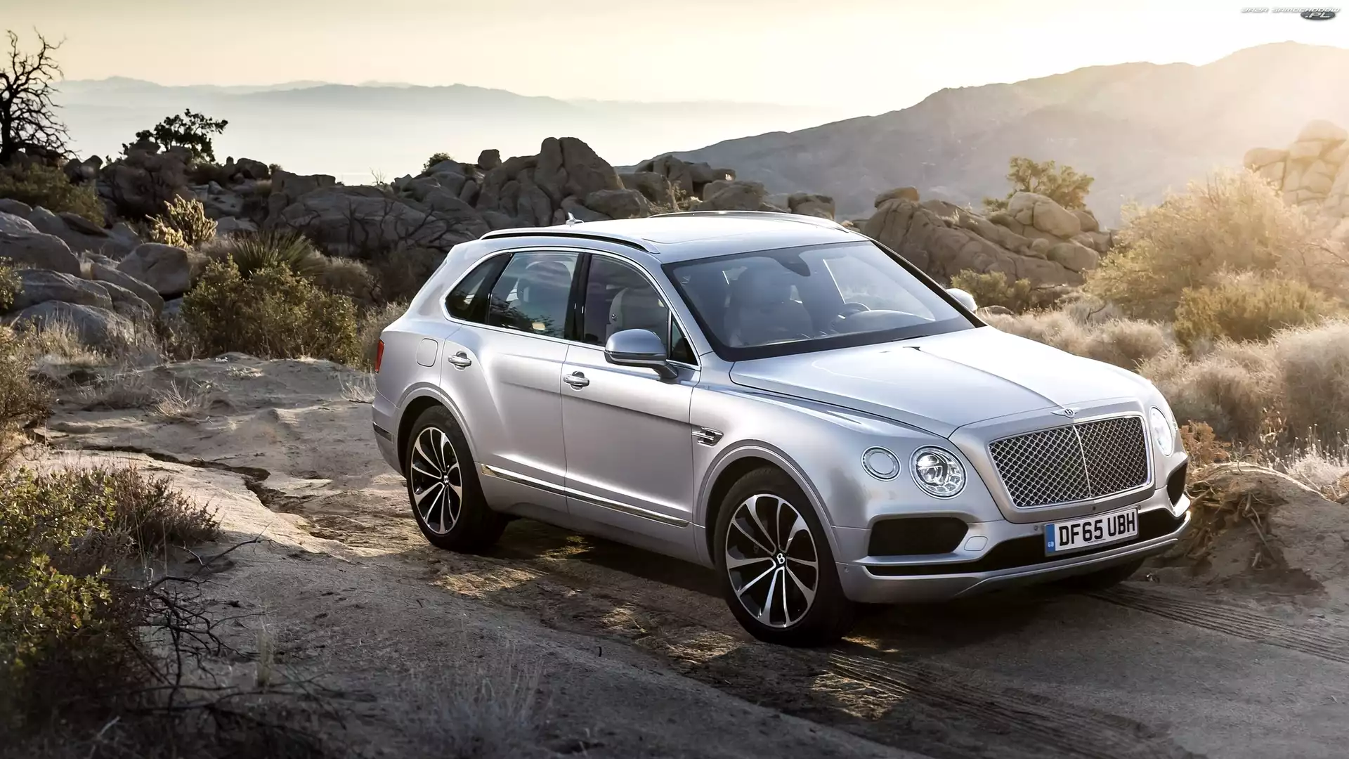 Bentley Bentayga, Rośliny, Srebrny, Skały- Zdjęcia samochodów
