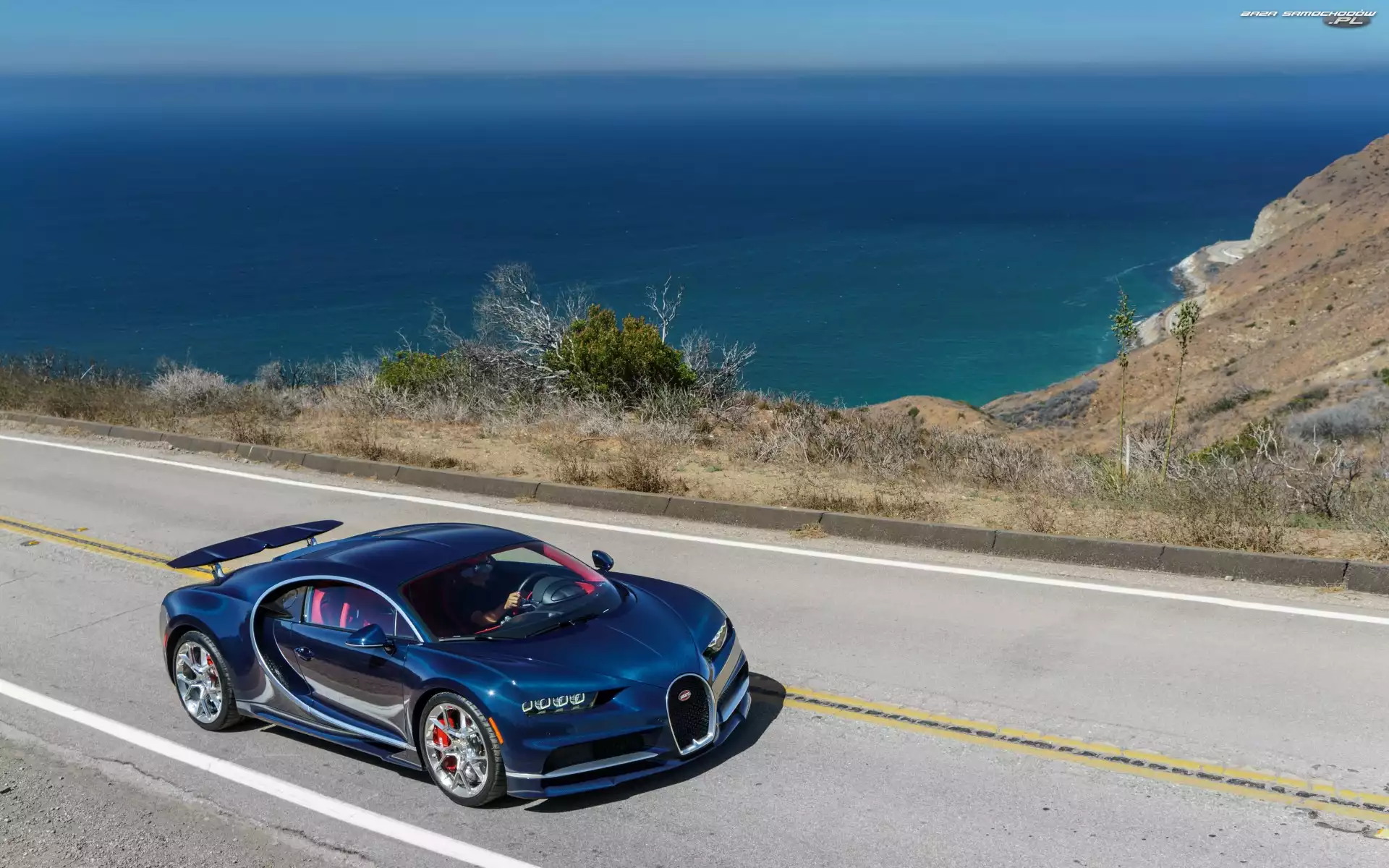 Roślinność, Chiron, Samochód, Brzeg, Morze, Bugatti, Droga- Zdjęcia samochodów