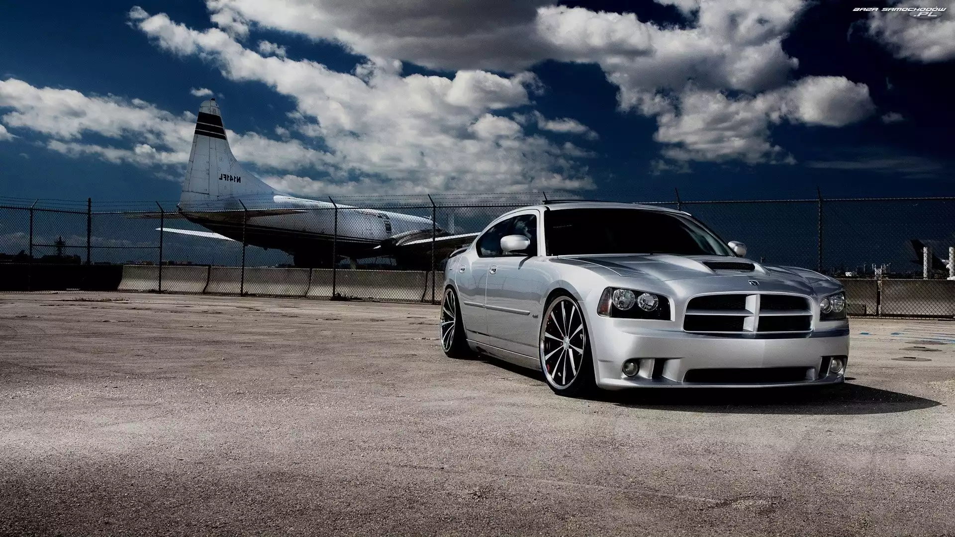 Samolot, Chmury , Samochód, Lotnisko- Zdjęcia samochodów